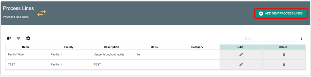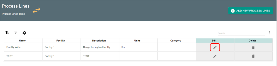 3. To edit an existing Process Line, click "Edit" in the corresponding table row: